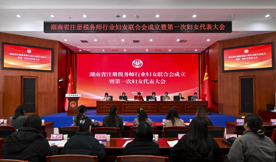 2025年12月23日上午,湖南省注册税务师行业妇女联合会成立暨第一次妇女代表大会在长沙隆重召开。中国注册税务师协会副会长、湖南省注册税务师协会名誉会长张云英、国家税务总局湖南省税务局党委委员、总经济师、省注册税务师行业党委书记陈云丽,湖南省税务局纳税服务处副处长、省注册税务师协会副会长秘书长于已斐,人事处副处长胡蓉,机关党委副处长杨辉,人事处副处长兼系统妇联副主席黄艳出席会议。会议由湖南省注册税务师行业党委常务副书记、湖南省注册税务师协会会长彭爱华主持,全省税务师行业妇女代表百余人参会。