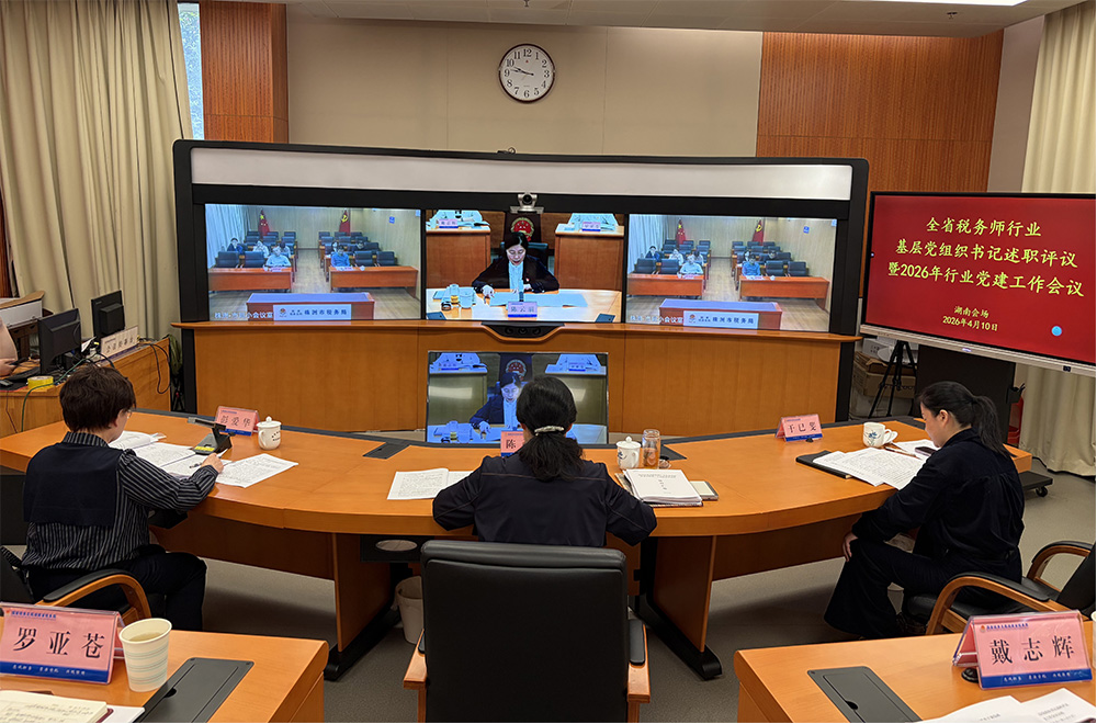 4月10日,湖南省注册税务师行业党委以视频形式召开 2025年度基层党组织书记抓党建述职评议暨2026年全省行业党建工作会议,全面总结过去一年行业党建工作成效,分析存在短板不足,并对2026年重点工作进行安排部署。省税务局党委委员、总经济师、省行业党委书记陈云丽出席会议并作点评讲话,省行业党委副书记、协会会长彭爱华主持会议。